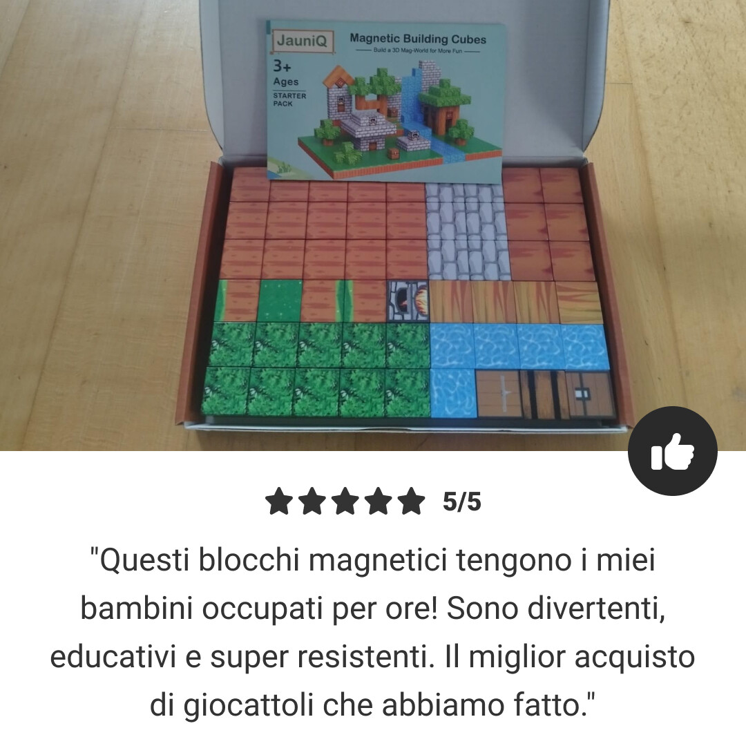 Questi blocchi magnetici sono fantastici! Mia figlia ha passato ore a costruire con loro. Sono facili da usare e perfetti per giocare in modo creativo