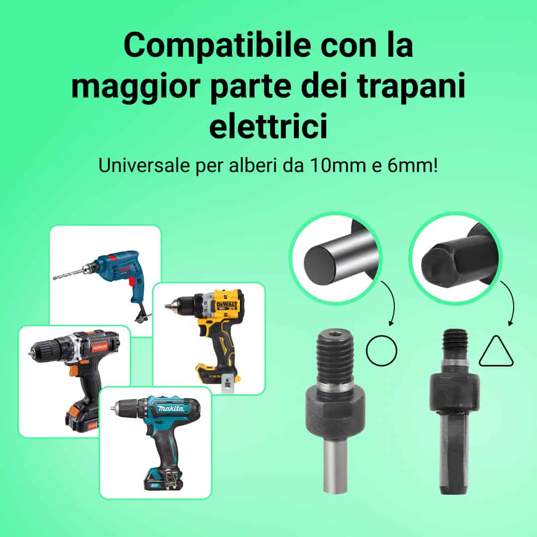 • Adatto per alberi triangolari da 10 mm e alberi rotondi da 6 mm, compatibile con la maggior parte dei trapani elettrici. 🛠️
