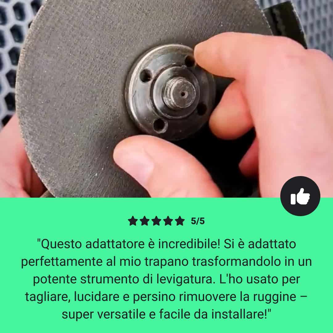 Fantastico!!! Non pensavo fosse così semplice trasformare il trapano in una smerigliatrice. Finalmente ho risparmiato spazio e soldi. Non lo lascio più! ❤️