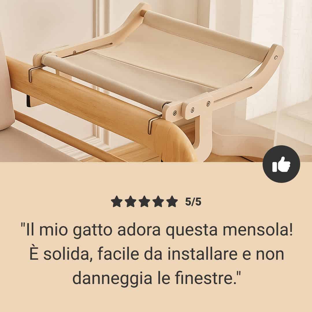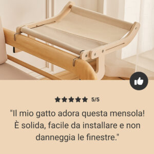 Il nuovo posto preferito della mia gattina! Facile da montare, lo adora vicino alla finestra. Un must-have!