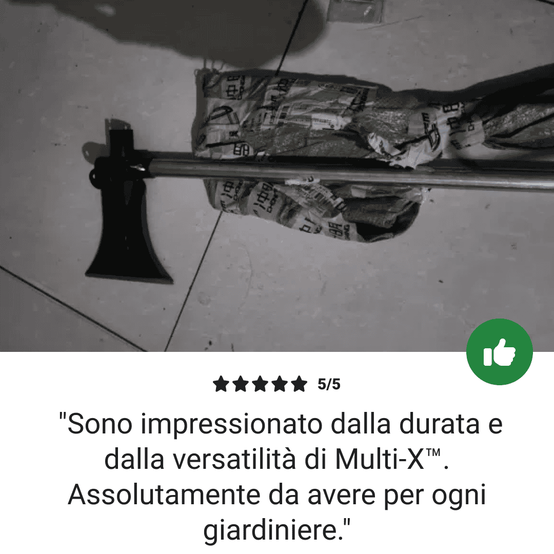 L’attrezzo da giardinaggio multifunzionale Multi-X™ , realizzato in acciaio al manganese, offre diverse funzioni in un unico strumento.