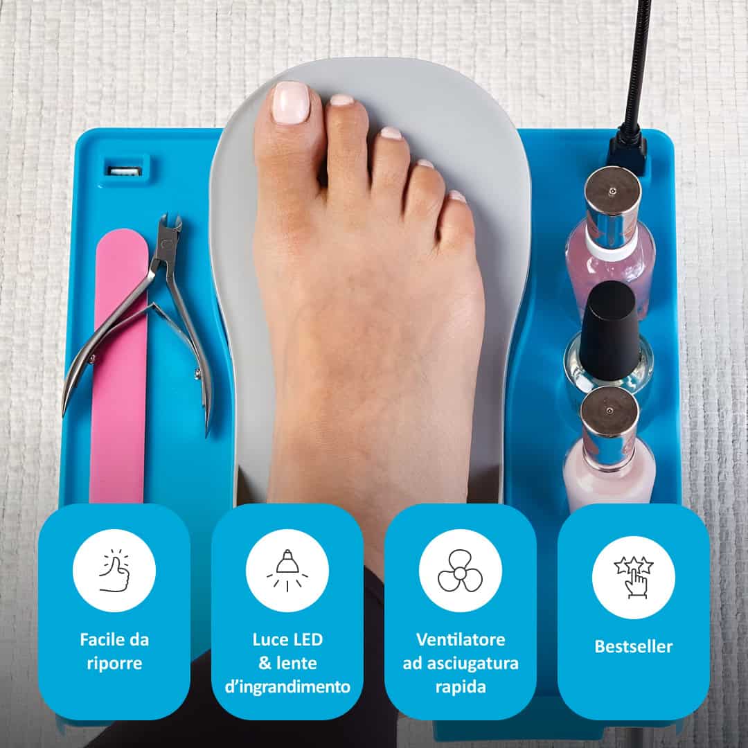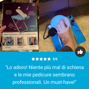 Finalmente posso farmi la pedicure senza contorcermi! Il poggiapiedi regolabile è una svolta, la luce LED illumina benissimo e la lente aiuta per tagliare perfetto. Consigliatissima per chi fa da sé.