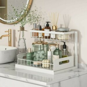 Questo organizzatore ha trasformato il mio armadietto del bagno disordinato in uno spazio ordinato. Il cassetto scorrevole è una caratteristica fantastica