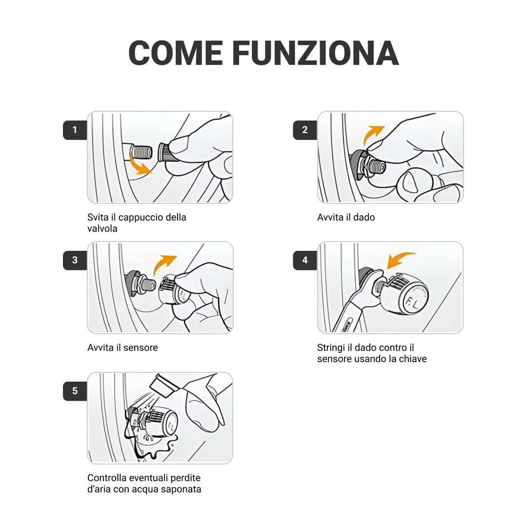 - Tipo: Sistema digitale di monitoraggio della pressione degli pneumatici (TPMS)