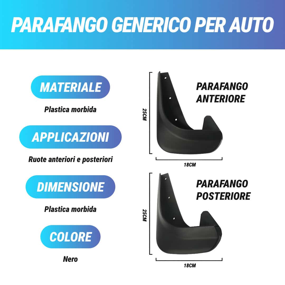 - Include 4 parafanghi: 2 anteriori e 2 posteriori