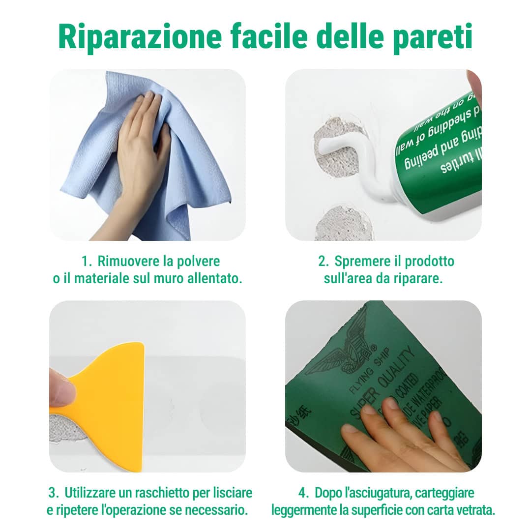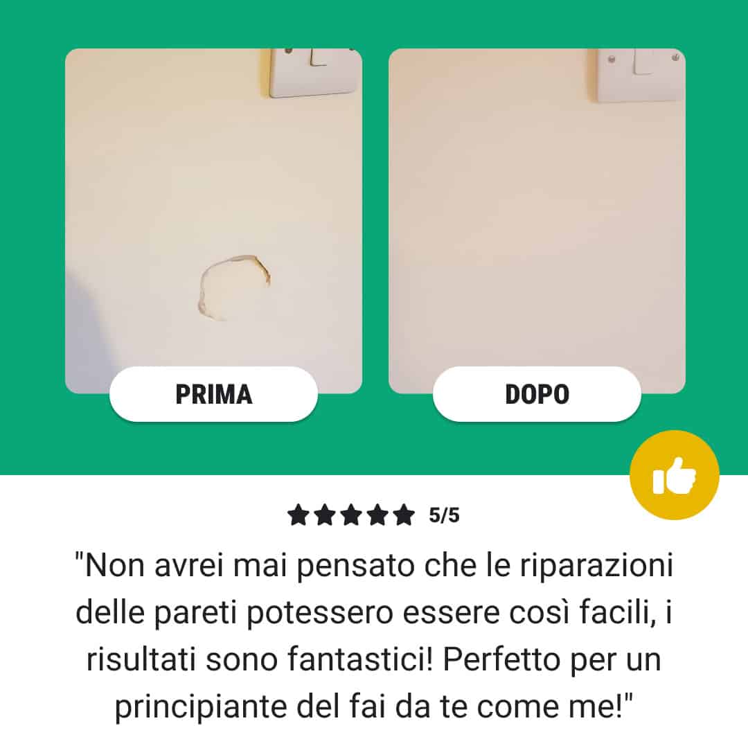• Il kit ti permetterà di stuccare le pareti danneggiate in poco tempo