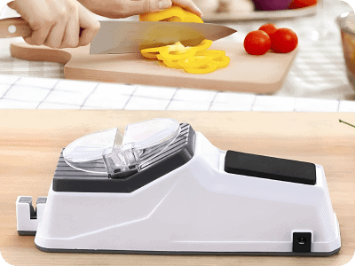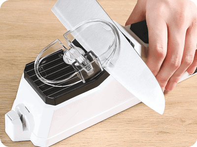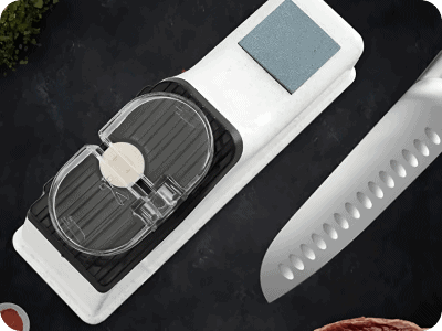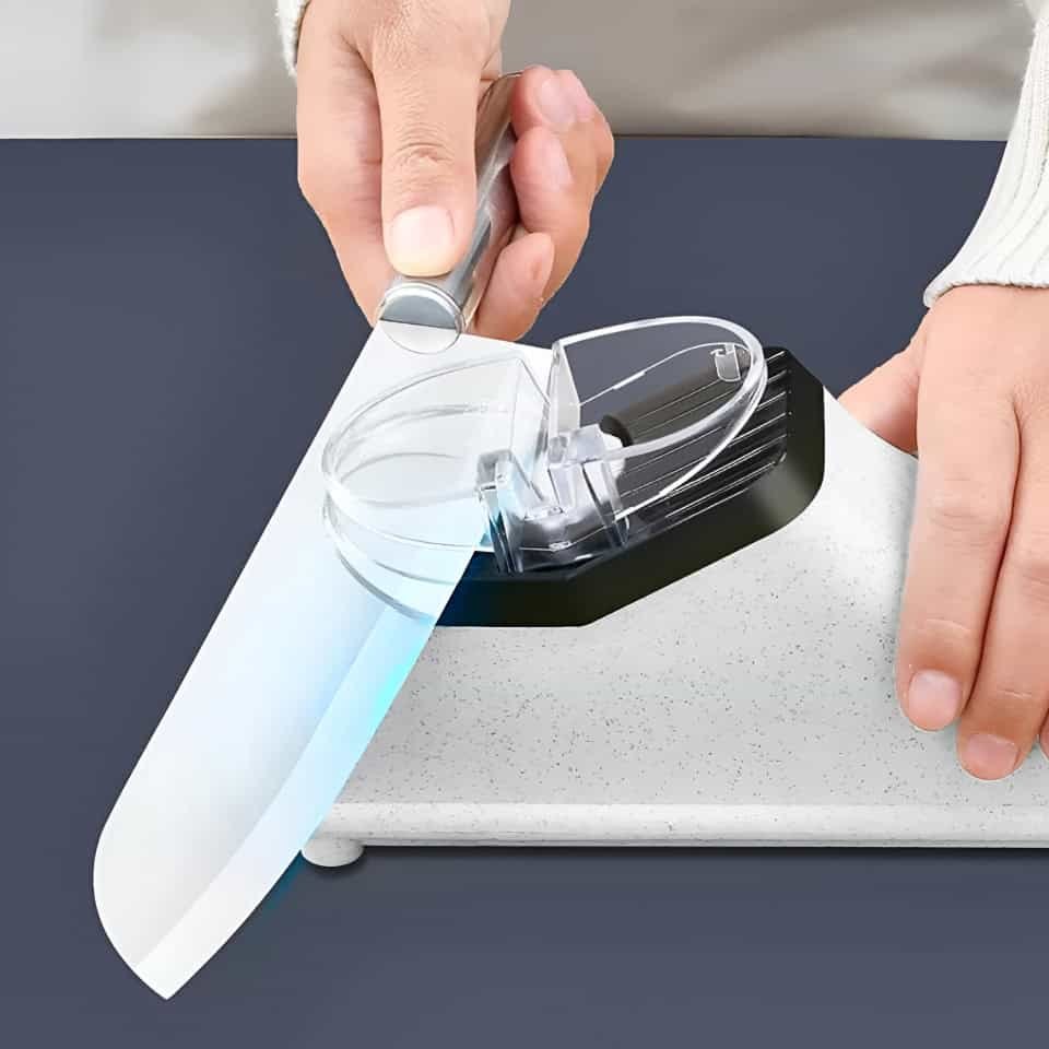 Avevo tante lame spuntate e mi seccava portarle dall’arrotino. Questo affilacoltelli è stata la soluzione geniale: pratico e veloce!